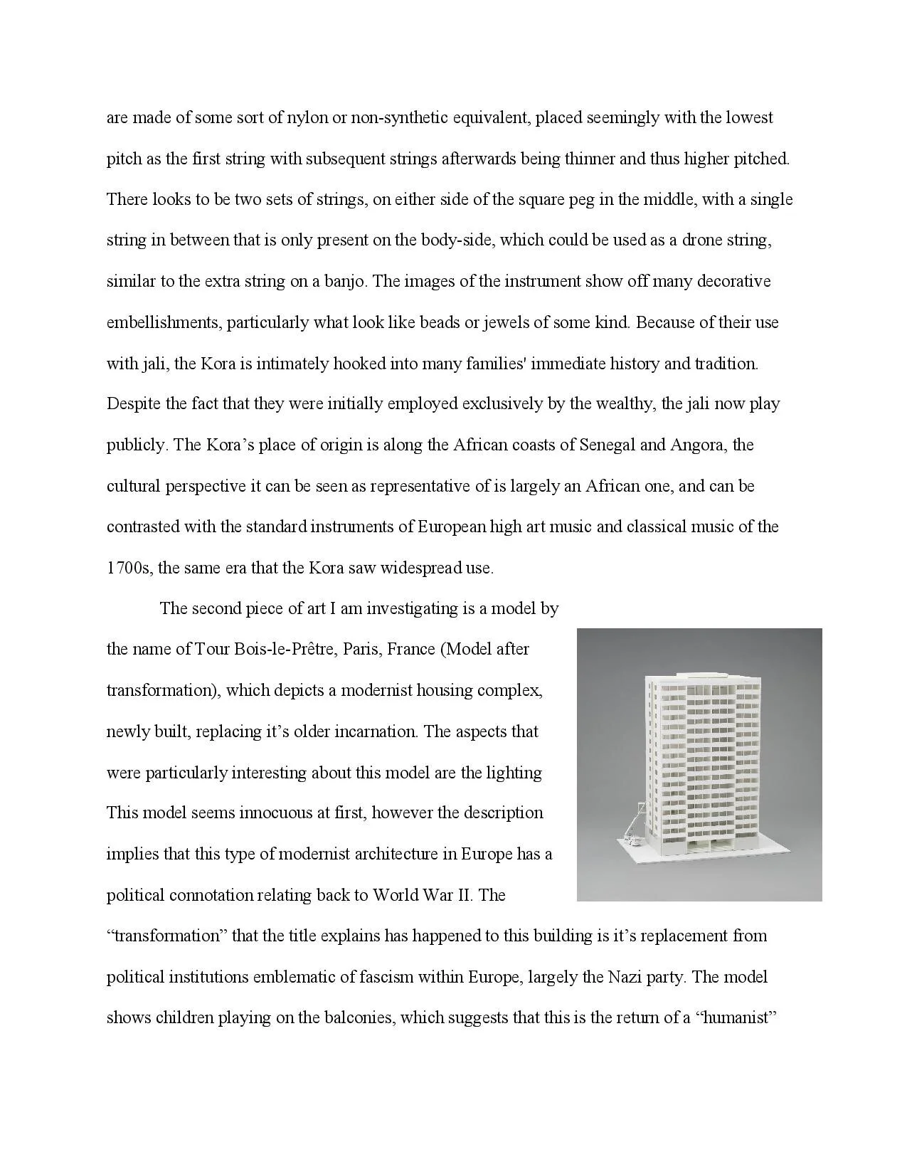 After finding images from online museum databases - MoMa and the Met - students applied what they learned from the formal elements of art, ideas of perspective, contrast, composition, to their chosen images, one with an African perspective, another with a European perspective, and a third which incorporates both. Students then made observation notes and began to develop a comparative analysis, making interpretations, and connecting themes and major concepts, creating an original project.
