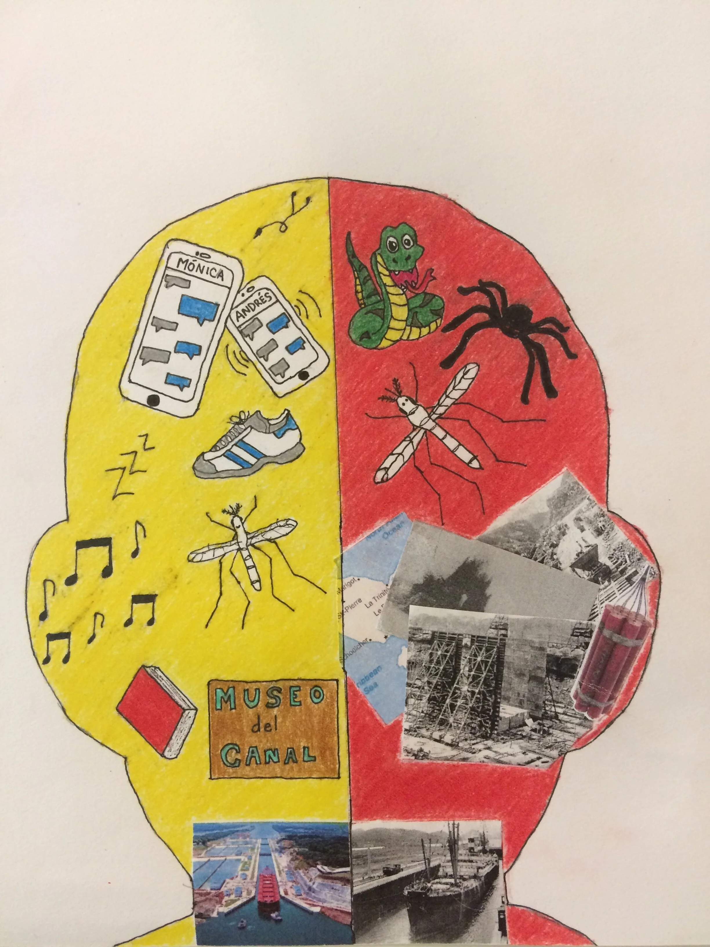 During this trimester, students in Intermedio 2 read the short novel Vector by Carrie Toth, which follows a young Panamanian teenager through a life-changing experience. After being bit by an infected mosquito, Antonio is transported back to the early 1900s where he finds himself working on the Panama Canal alongside his great grandfather. While reading this book, students explored themes related to the transmission of diseases through vectors, the daily life of workers and the segregation and discrimination many of them faced, and the history, engineering, and overall significance of the canal for Panama. As a final project, students created a variety of art pieces in response to the symbols and themes presented in the book. Each creative expression piece is accompanied by an artist statement in which students explain their artistic distinctions as well as their connection to the book.